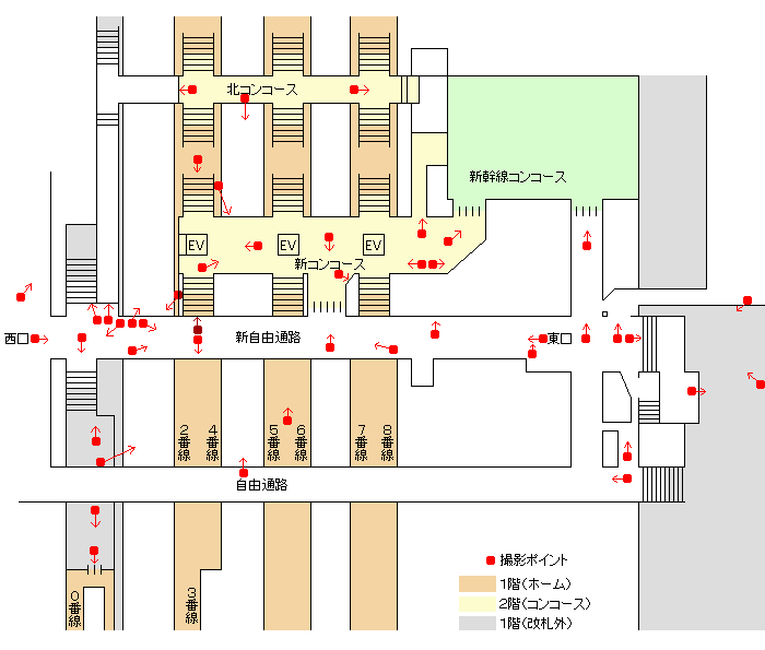 旧東口切符売り場、イーサイト、東口、旧東口1階への階段、東口中央部、自由通路東側、旧1番線ホーム、新自由通路旧1番線南側階段を更新。